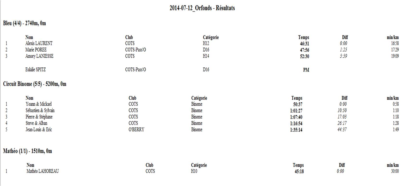 Re: Entrainement du 12 juillet