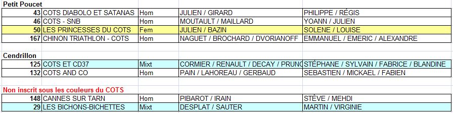 Après une petite extraction voici les équipes ou il y a des coureurs du COTS